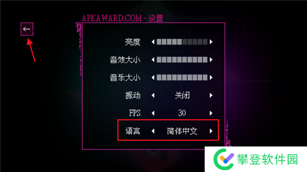 4、点击左边的箭头很快就可以换到简体中文,然后左上角返回;