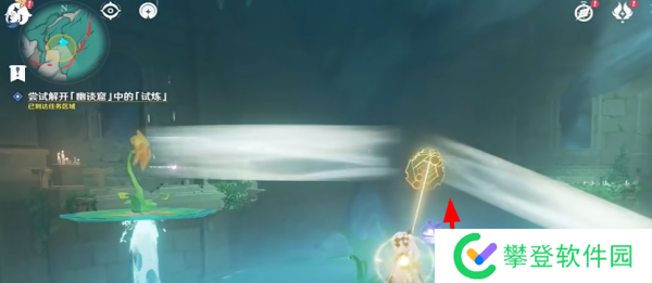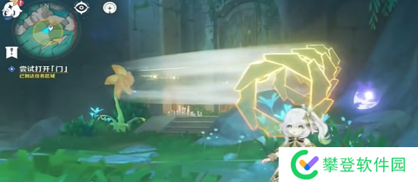 2、传送到任务点,先用技能开启向日葵,穿越花环。