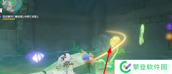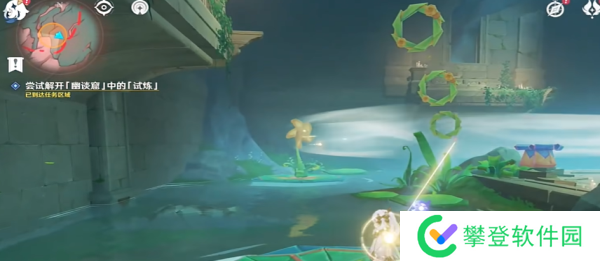 10、穿过第一个花环后,借助荷叶继续完成试炼。