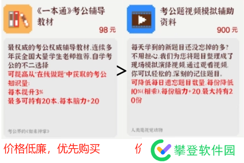这东西在1.0.12版本可以无限买,效果还能叠加,后期相当于900块换20脑力了,不过没补习班廉价。