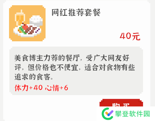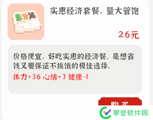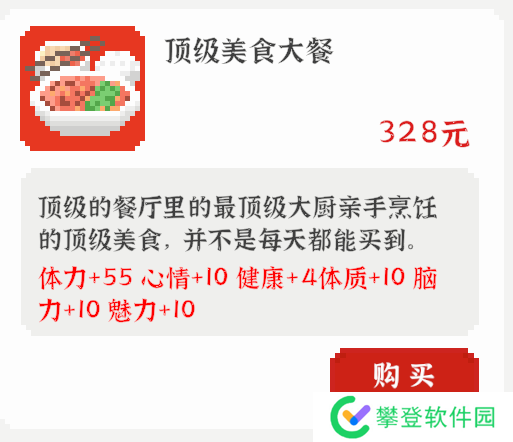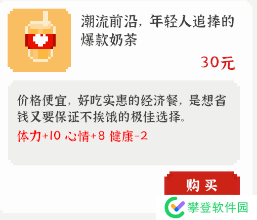 介绍:独立的体力加点,不会与饭共用次数,也就是说吃饭后还可以喝奶茶。后期不缺钱之后推荐购买,前期可用于补全紧缺的体力。