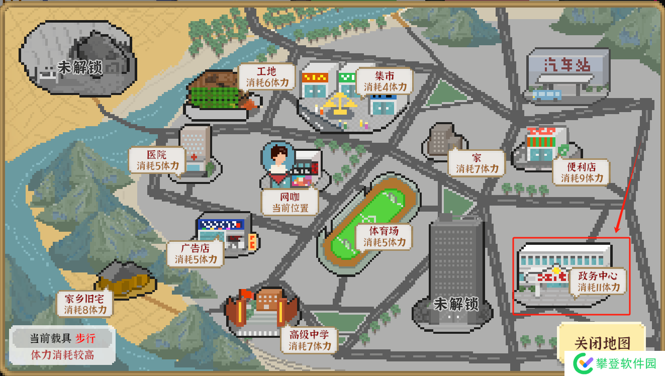 广告店、网吧适合美术线,能提升脑力和现金;政务中心适合考公线,能提升行政,但现金较少。
