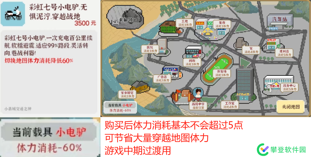 解析:推荐在中期购买,用于降低穿越地图的体力消耗,但在完成父母的攒下5万块钱任务后可免费获得二手车一辆,穿越地图不再需要花费体力,因此该物品只推荐中期购买过渡。