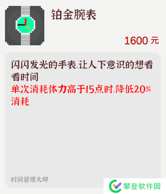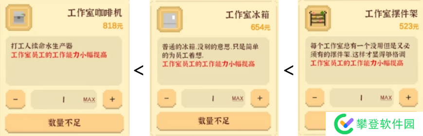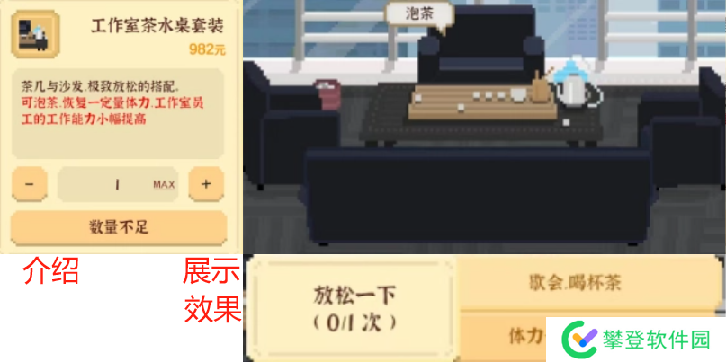 介绍:每回合睡觉时自动回复4点健康和10点心情,可以降低你的健康心情的数值压力。抵消熬夜的负面健康值损失,建议买完工作室茶水桌后购买。