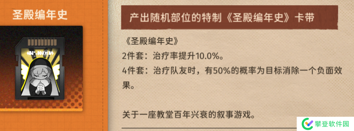 新月同行目前共有14种卡带,每种卡带除了套装效果不同外,在突破四阶段能刷出来的特殊词条也不一样。