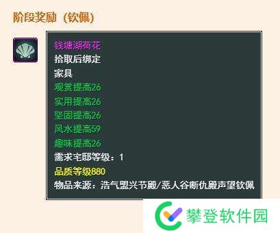 3、当声望达到【钦佩】后可以获得家具【钱塘湖荷花】;