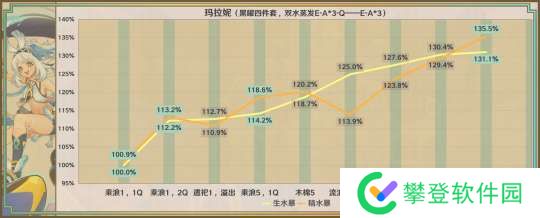4.1.3. 理论情况乘浪的回旋提供的副词条无法补足玛拉妮的充能效率需求,如玛香钟莫队伍通常有约200%,但考虑到圣遗物提供的充能与实战中有环境提供能量,携带该武器相对非充能武器可能施放更多次数的元素爆发;按照乘浪的回旋每二轮多施放一次元素爆发计算时,则高精炼在四星武器中是较优先或最优先的选择。