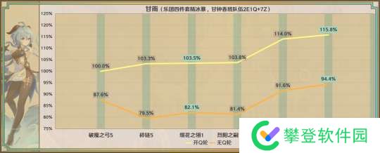 4.1.2. 在不计入乘浪的回旋的副词条充能收益、即元素爆发施放次数与其余武器相同时,各精炼的表现都可能低于精5木棉之环。