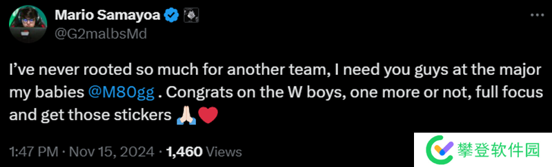 “我从未如此支持过另一支战队,我需要你们参加Major,我的宝贝们。恭喜你们取得胜利,不管输赢都要全神贯注,去取得那些贴纸。”