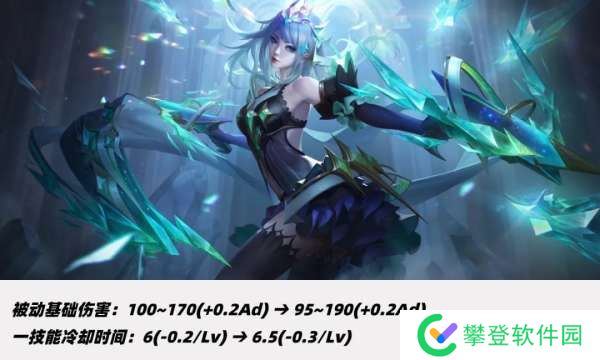 一技能冷却时间从6-5秒调整为6.5-5秒,即一级时增加了0.5秒、满级不变,改动思路就是削弱前期、加强后期。