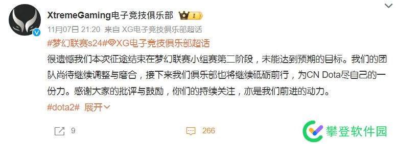 赛后XG战队的官方微博发布了一则消息表示战队将继续调整磨合。
