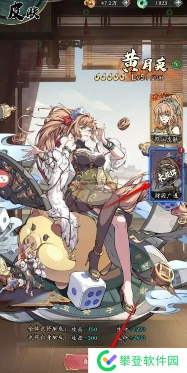 3、在皮肤页面,选择武将已有的皮肤切换,没有皮肤的玩家需要解锁该皮肤;