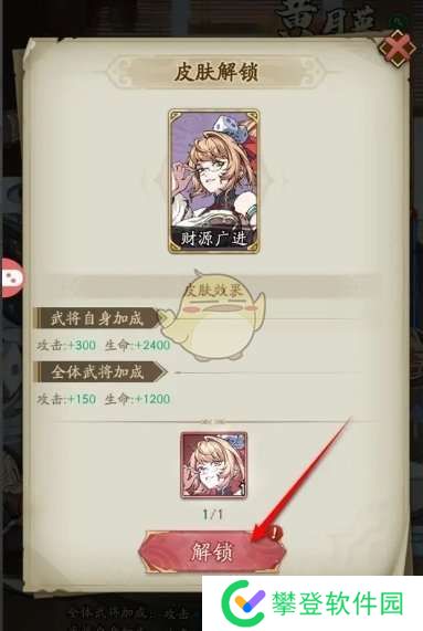 4、在皮肤解锁页面,点击下方的解锁选项;