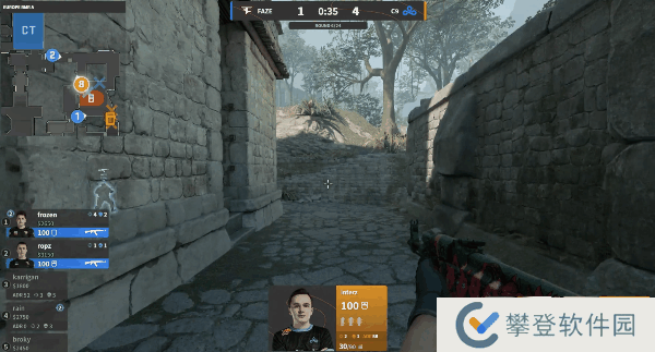 C9先做进攻方,手枪局直接提速中路将FaZe平推,次回合FaZe选择纯e。