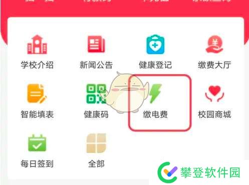 1、首先进入易校园app,点击首页的“交电费”进入。