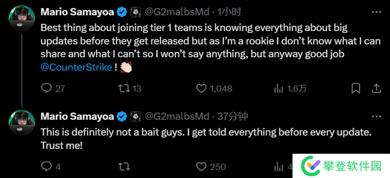 G2战队选手malbsMd在社交平台上发布动态,表示这次更新真的非常赞。