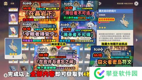 大家好啊!这次带来在纳塔大世界任务中收集的四枚镌光铭印的残片使用方法