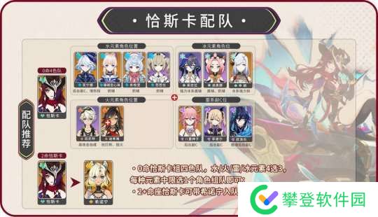 (3)考虑到恰斯卡在瞄准过程中无法快速闪避,不是绝对抗打断,且自身生命值较低等一系列自保性低的特点,在考虑舒适性的情况下建议带相应元素盾辅,如莱依拉、迪奥娜等。