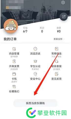 1、首先,打开途家民宿app主页,点击进入我想当房东选项;