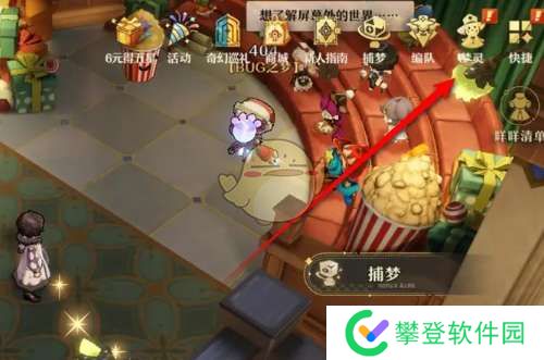 1、首先我们需要进入到游戏主界面,在右上角的位置点击梦灵图标。