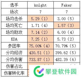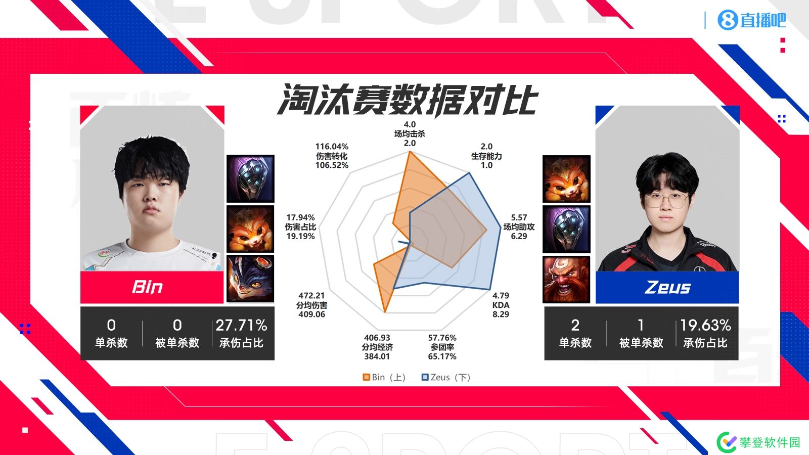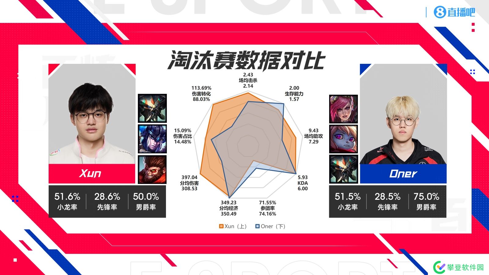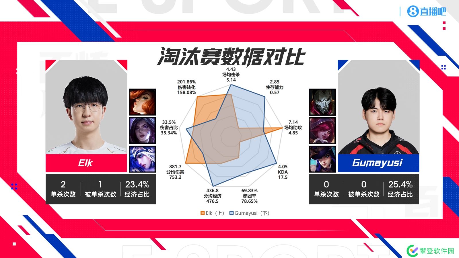 注:由于选手比赛场数不同,部分数据会受比赛场数影响,本榜单仅供参考;数据范围为淘汰赛所有单位置选手中中的最大值和最小值,故某一选手的数值太过豪华时,会显得其他选手的数值图形过于低效。