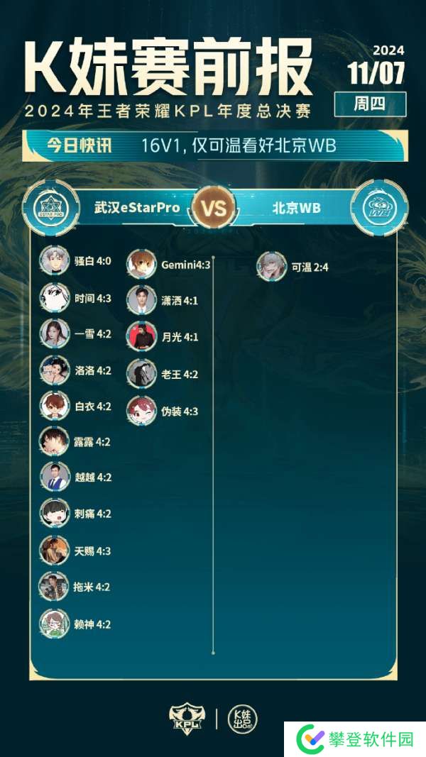 eStar对战WB :16v1,仅可温一人看好北京WB。