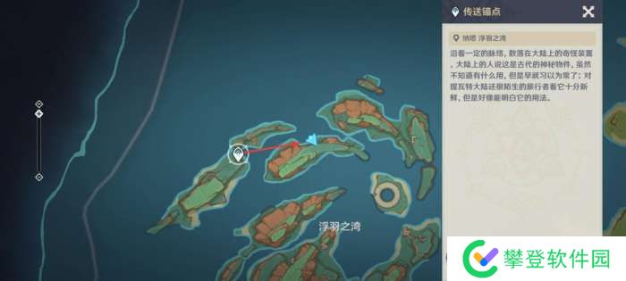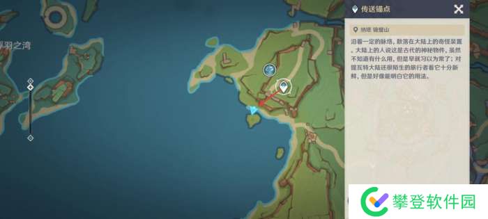 来到烟谜主西侧海岸的传送点,朝西南方向走