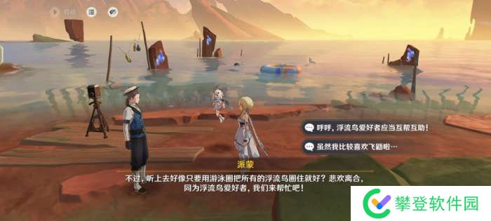 3.隐藏成就:套圈也是圈套成就引子:旅行者和派蒙在烟谜主西部海岸边偶遇了一位喜欢浮流鸟的摄影人…