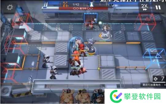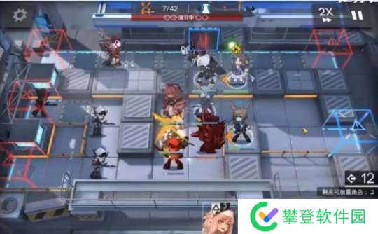 撤退香草,然后在右侧放置一个天灾狙击手,准备打击从右边走过来的狂暴士兵。接着,在她的左下方放置一个重型干员用来吸引仇恨。