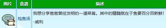 4、7心事件:与威利好感度到达7心后,他会给玩家寄来一份烩鱼汤食谱。