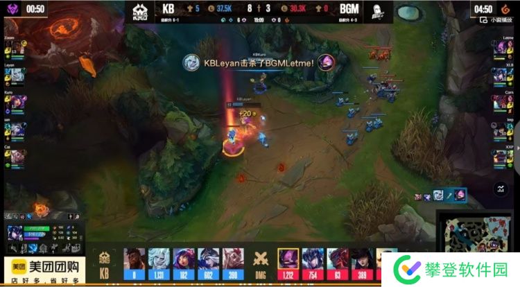 【19:08】KB开小龙,XLB猪妹一个大招命中Leyan佛耶戈拼惩抢下小龙,但是KB追击再次收掉了Letme凯南!8K经济差!