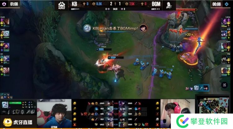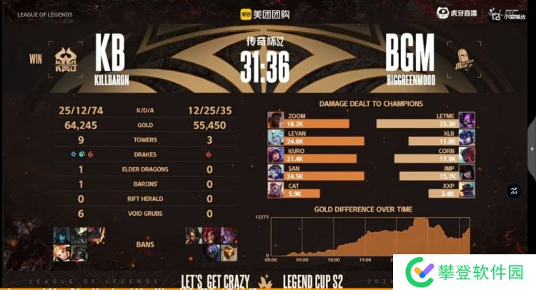 本场比赛对线期KB多线优势,Leyan佛耶戈拿资源入侵宛如回家,XLB猪妹苦不堪言!12分钟Leyan队就拿下6K经济优势!KB轻松推进压制,虽然BGM高地团连守两波,一度将经济差从12K拉回到6K左右但是无济于事,KB大龙团依靠Kuro妮蔻闪现绕后坐大四个终结比赛!拿下第七胜,常规时间内还没输过!