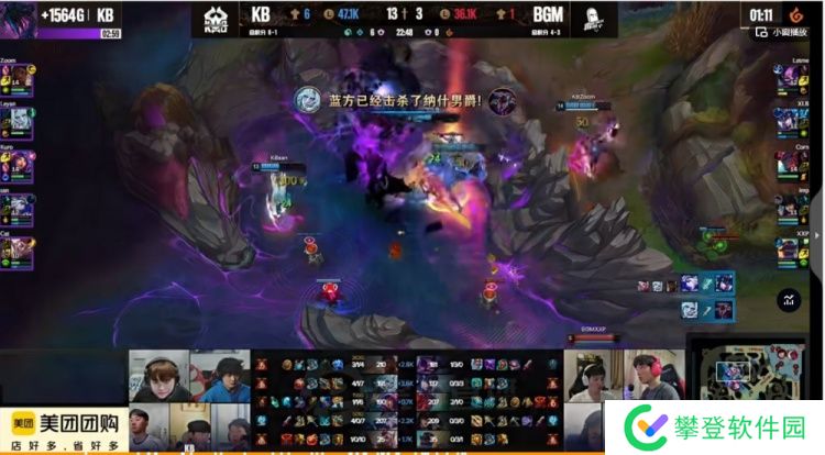 【25:03】Kuro妮蔻闪现大招开团但是KB过于集结,Letme凯南大招电了个爽!KB推掉了中路高地,但是BGM打出2换5团灭KB,但是Leyan佛耶戈直接抢掉了第四条小龙!BGM野辅直接倒下!随后高地团又是Letme凯南和Corn永恩配合再次秒掉了Leyan佛耶戈!这波BGM又击杀了KB三人,再次守住一波!经济差只有6K了!