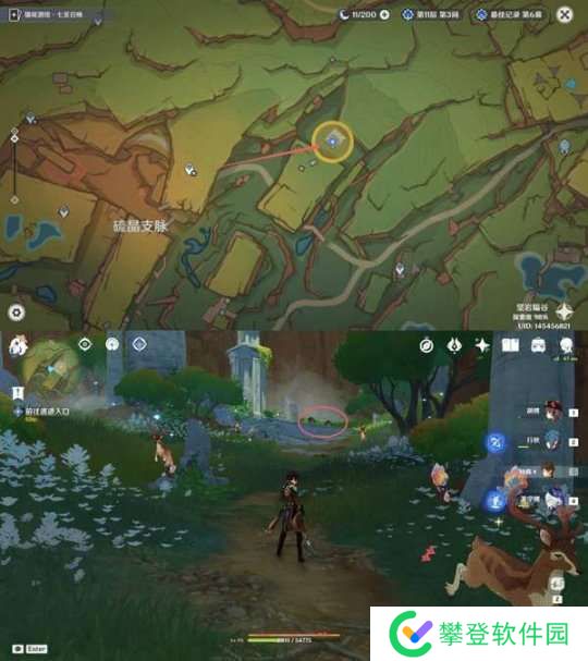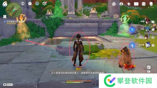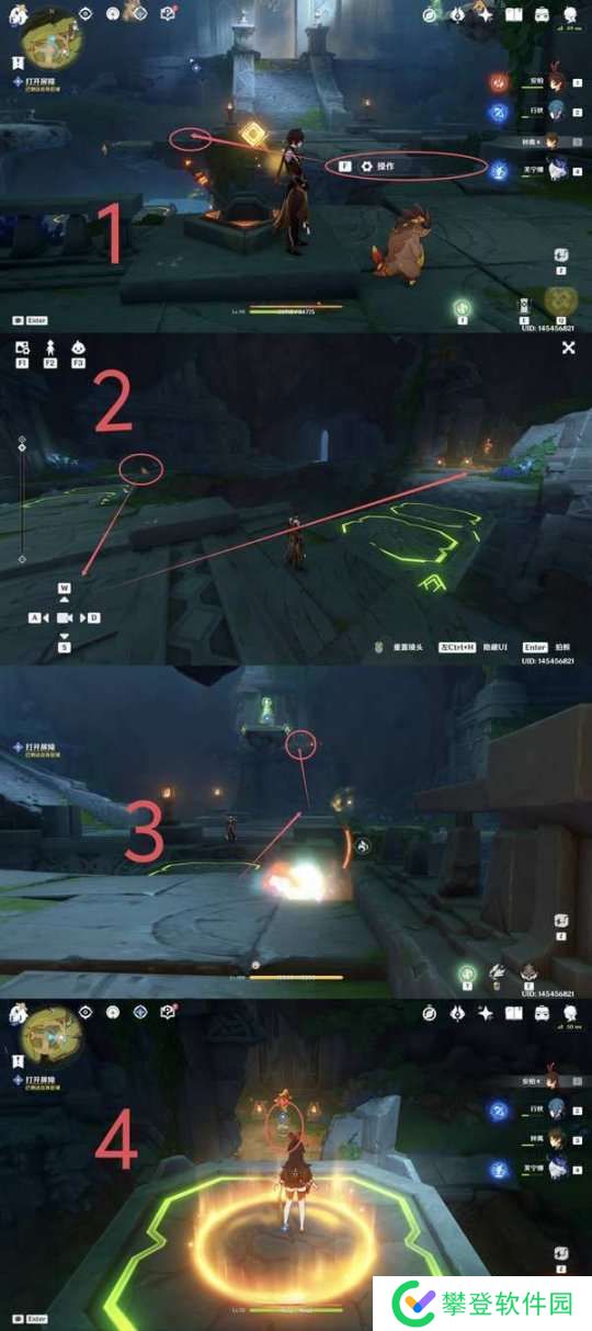 首先角色先操作摇杆,然后前往站在图中圆圈处(下图图1);