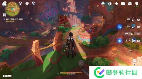 小峭锋龙视角跟随路径往前走我们需要通过解谜将岩晶柱击破产生道路,然后到达平台上