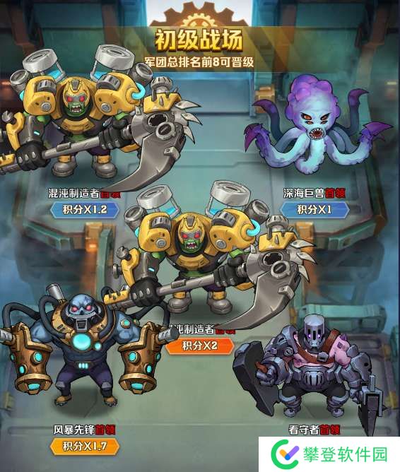 玩家需要面对5个首领,每个首领的积分倍率是有差别的,一般中间的首领积分倍率最高,最难的是2倍积分的首领。