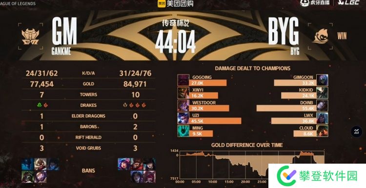 【43:33】上路团战Kid斯卡纳顶到了Uzi薇恩,Doinb发条被开但是金身+火龙魂大招加持直接秒掉了Uzi薇恩!GM没有输出了!BYG打出0换4,从上路一波结束比赛!翻中翻拿下本队的第七胜!