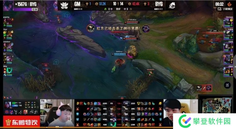 【6:37】GM三人包下越塔强杀Lwx维鲁斯,但是BYG中野支援到位反击成功,换掉了GM下路组,Lwx维鲁斯复活K了个头!同时上路GimGoon贾克斯单杀Gogoing奥恩!