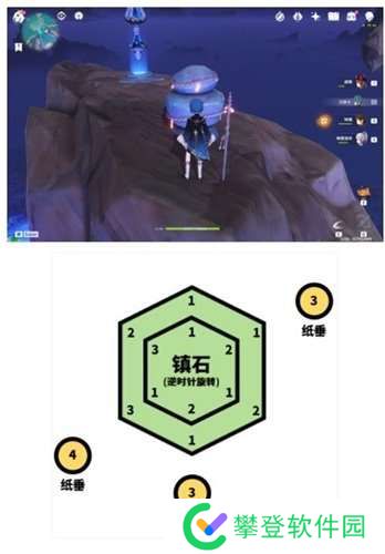 转动面前的相位之门,传送到天上即可找到镇石(在传送锚点旁边)。