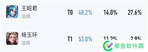 T2梯队:杨玉环(辅助T0.5)、武则天、小乔、嬴政、沈梦溪、王昭君、金蝉