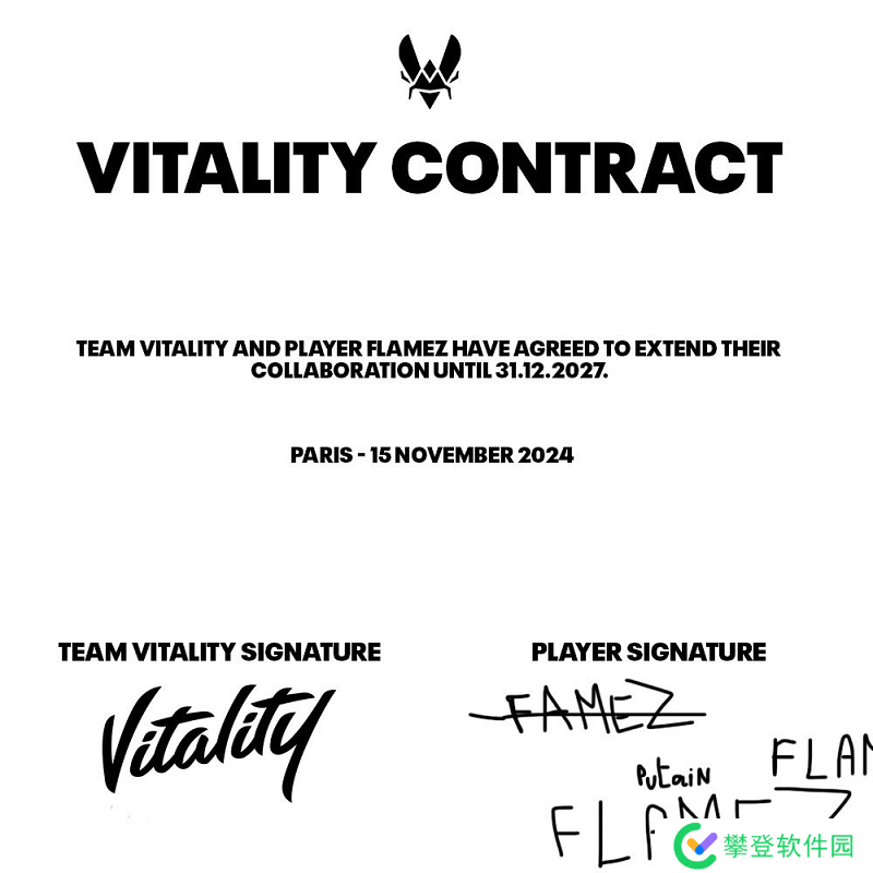 Vitality社媒发布动态:队伍与flameZ的合同已签订至2027年12月31日。