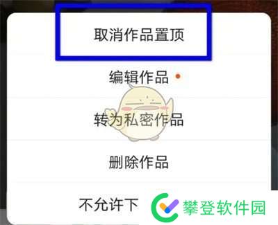 3、最后页面底部会弹出一个设置窗口,我们在其中点击“取消作品置顶”,随后再返回到作品列表中会发现该和品已经不是置顶显示了。