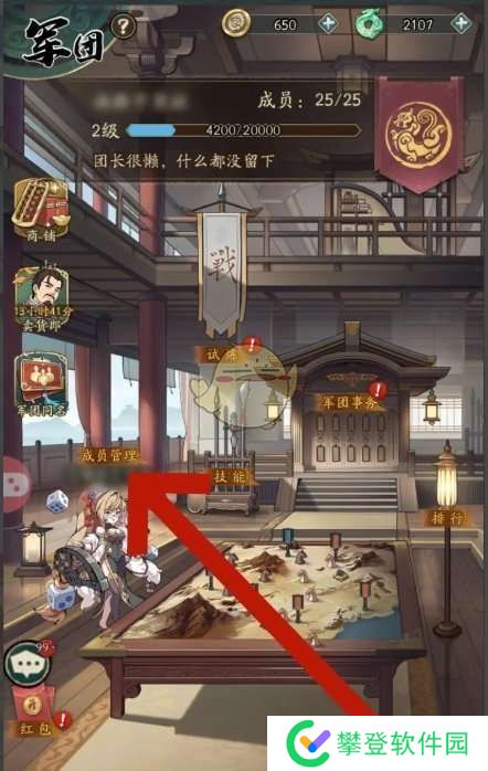 3、在军团成员列表中,点击右下角的按钮,这个按钮是退出当前军团的选项;