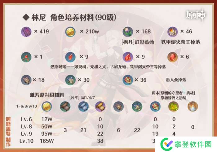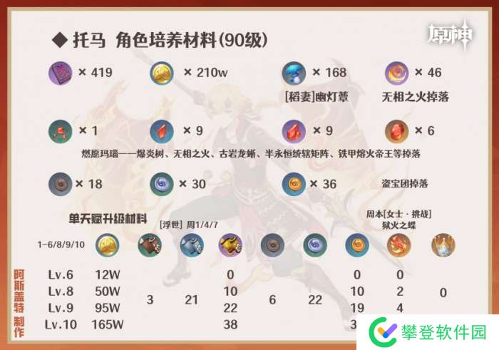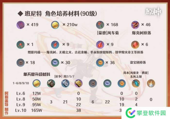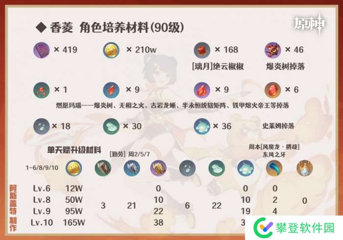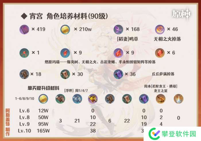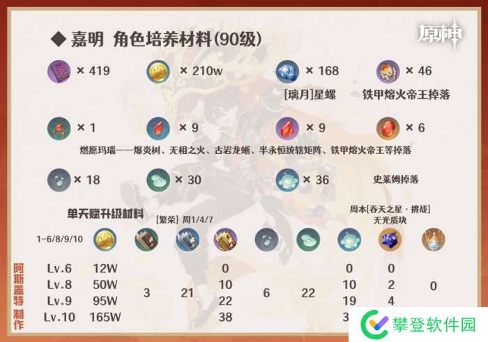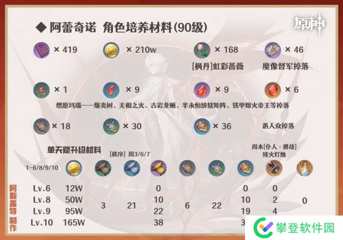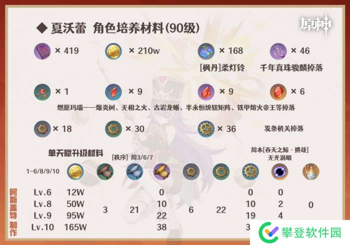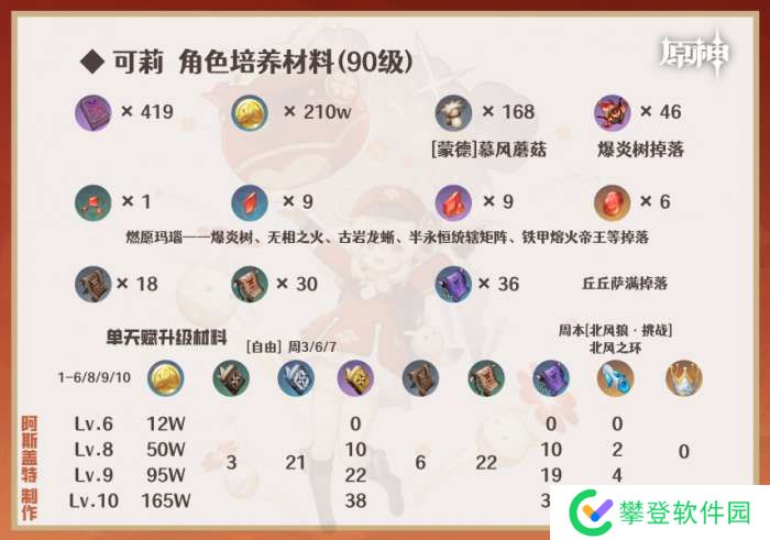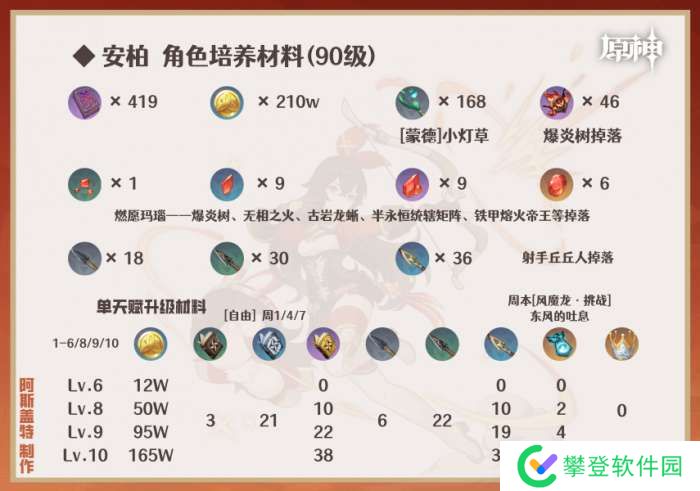 ③ 因为不需要站场输出,所以只需要升级元素爆发、元素战技,普攻可以不升级