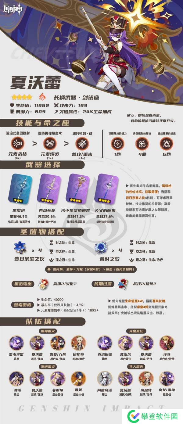 ⑤ 当前夏沃蕾主要供职于雷火输出队伍,不加入其他非雷、火元素角色。