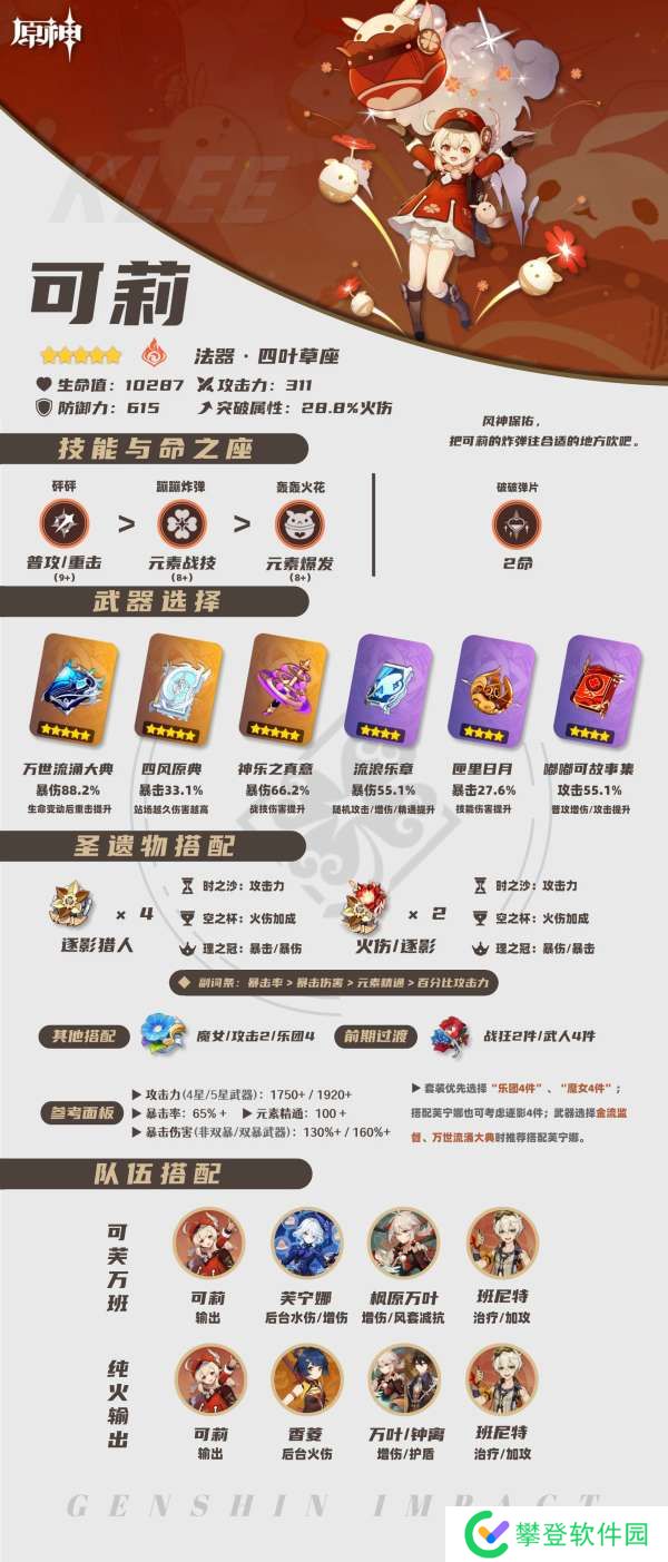 ① 可莉的主要伤害来自普通攻击,推荐优先升级,以自身火伤进行输出时推荐三个技能全部升级。