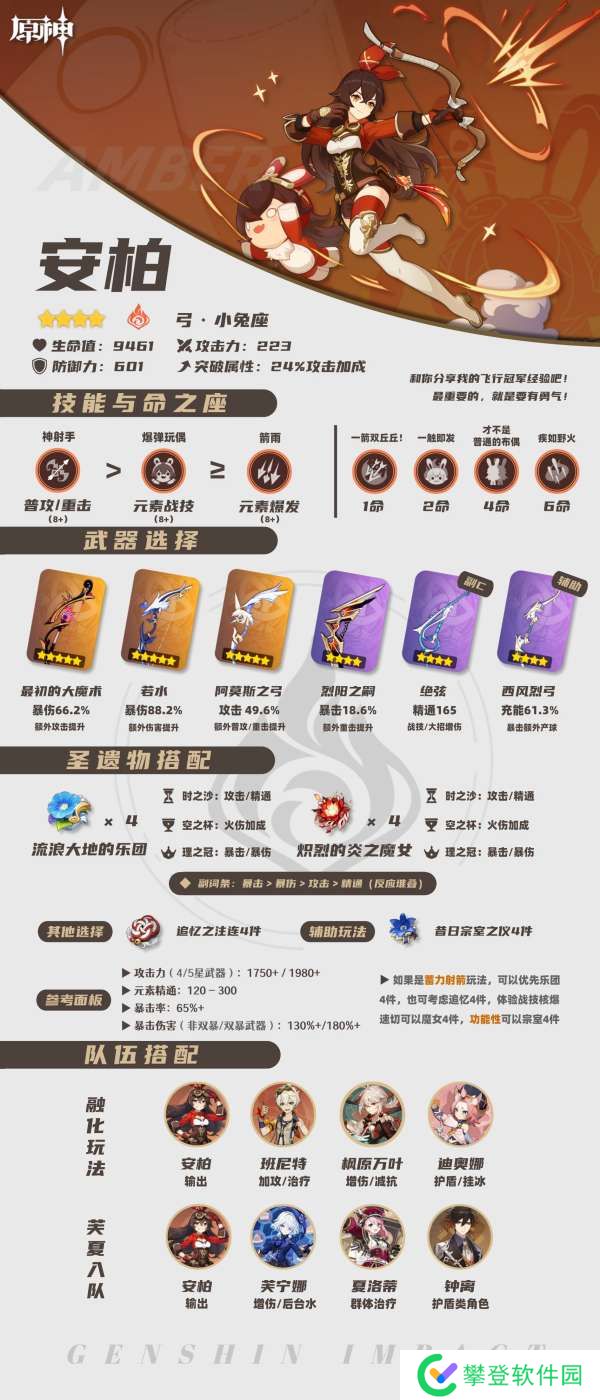 ⑤ 安柏的1、2、4、6命在各个玩法都有不错的提升,1命适合蓄力射击、2&4命对于战技核爆玩法比较不错、6命适合辅助队伍。