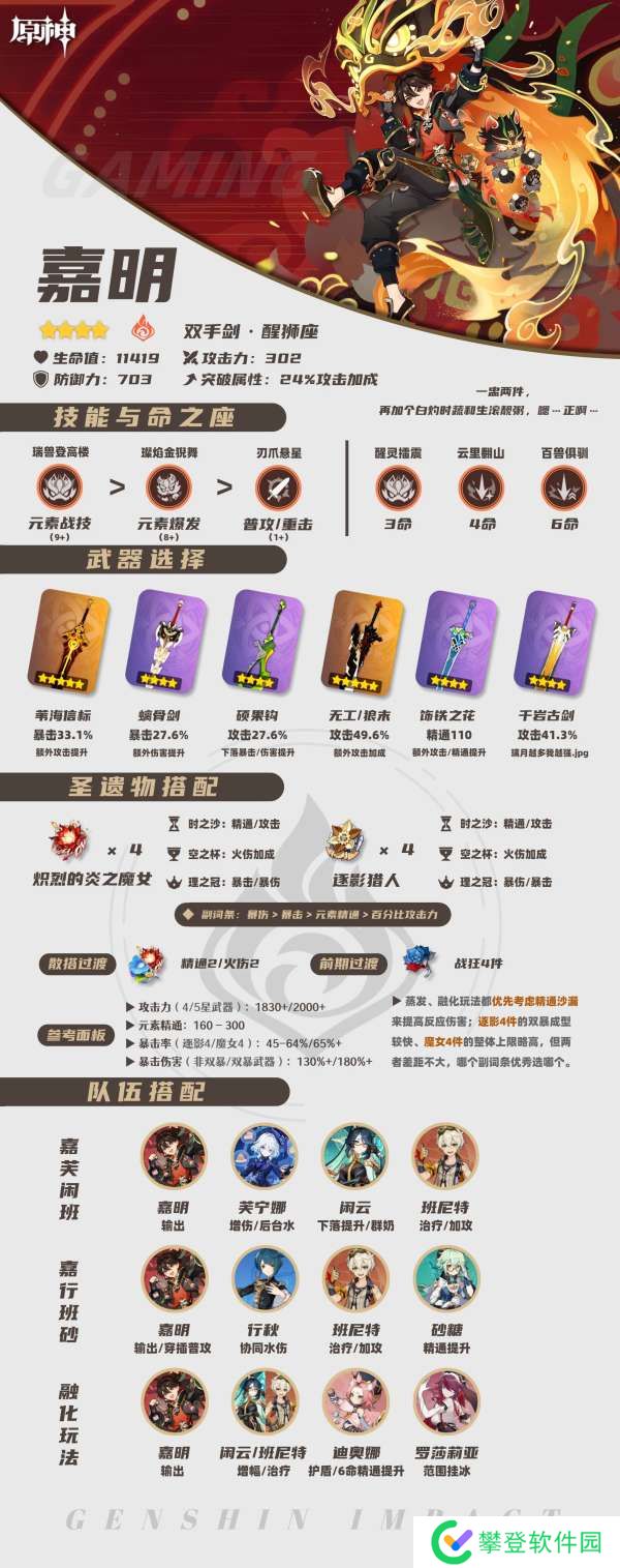 ③ 套装还可考虑“渡火”4件、“乐团”4件,以及“火伤+攻击”的2+2搭配。