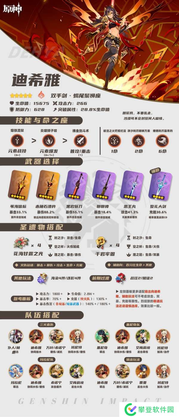 ② 0命迪希雅即可体验“迪香万班”的纯火输出玩法,并且迪希雅的命座越高,该玩法的输出能力越高。
