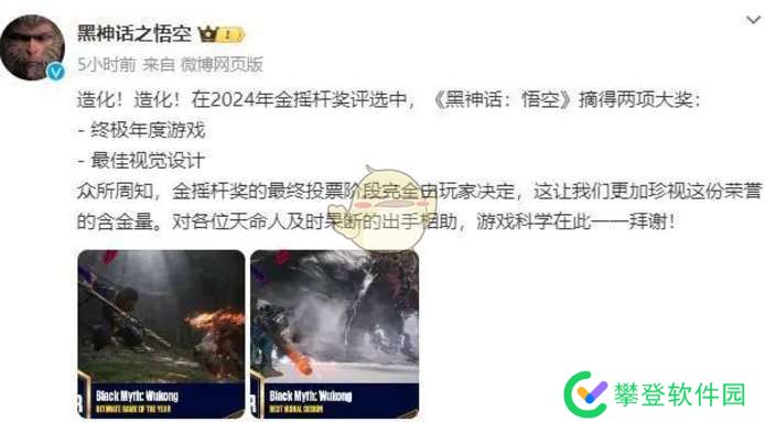 以上就是pk游戏网小编整理带来的黑神话悟空金摇杆2024获奖一览,更多相关游戏攻略,请关注pk游戏网!